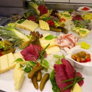 This Interlaken hotel serves a buffet breakfast every morning from 07:00 to 10:00. Guests will enjoy a variety of local dishes at the à la carte Krebs restaurant. The trendy bar is also available. There is a quick bites serving American food merely 50 metres away.