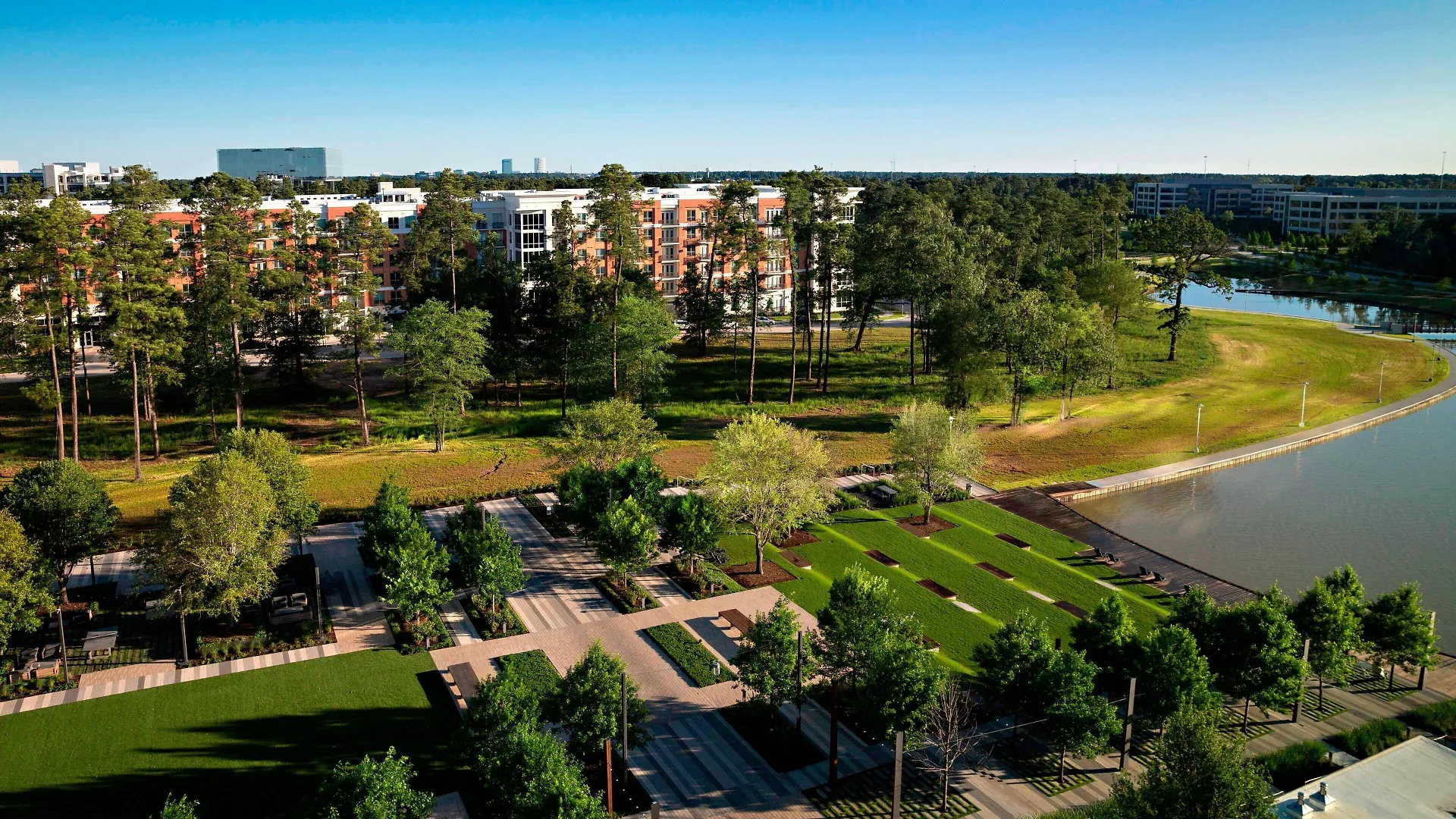 Nestled in a business district, Houston Cityplace Marriott At Springwoods Village is approximately 10 minutes by car from Hurricane Harbor Splashtown Amusement Park. Featuring an outdoor pool and views of the lake, this hotel offers guests to enjoy American dishes.